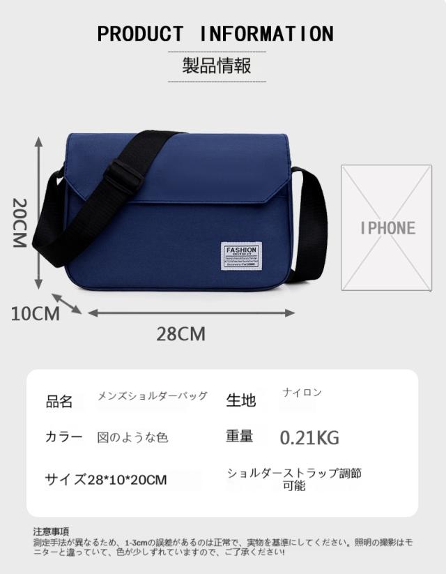 ショルダーバッグ、メンズバッグ、メッセンジャーバッグ、ナイロンバッグ、軽量、防水、大容量、旅行バッグ、通勤バッグ、コンパクト収納、カジュアルバッグ
