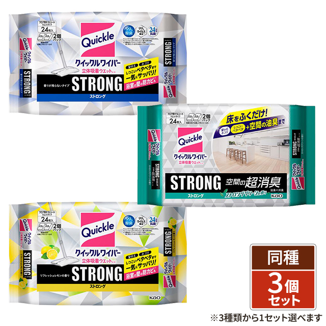 [3種類から1種類選択] クイックルワイパー 立体吸着ウエットシート ストロング 24枚入 × 3個セット お掃除シート クイックル 花王