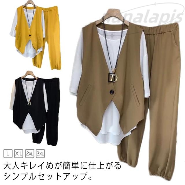 スーツ レディース セットアップ 洗える パンツスーツ ベストスーツ オフィス カジュアル 上下セット ノースリーブ レディーススーツ ストレッチ 大きいサイズ フォーマル 通勤 女性 30代 40代 50代 卒園式 卒業式 セレモニースーツ ママスーツ 送料無料
