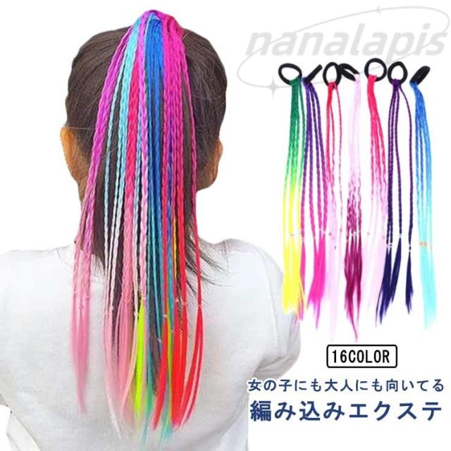三つ編み エクステ キッズ 子供 編み込み 16色 2点セット 女の子 グラデーション髪 髪の毛 付け髪 ダンス ヘアアクセサリー エクステンション カラフル ウィッグ ヒップホップ レゲエ ダンサー 髪型 舞台 ダンス イベント