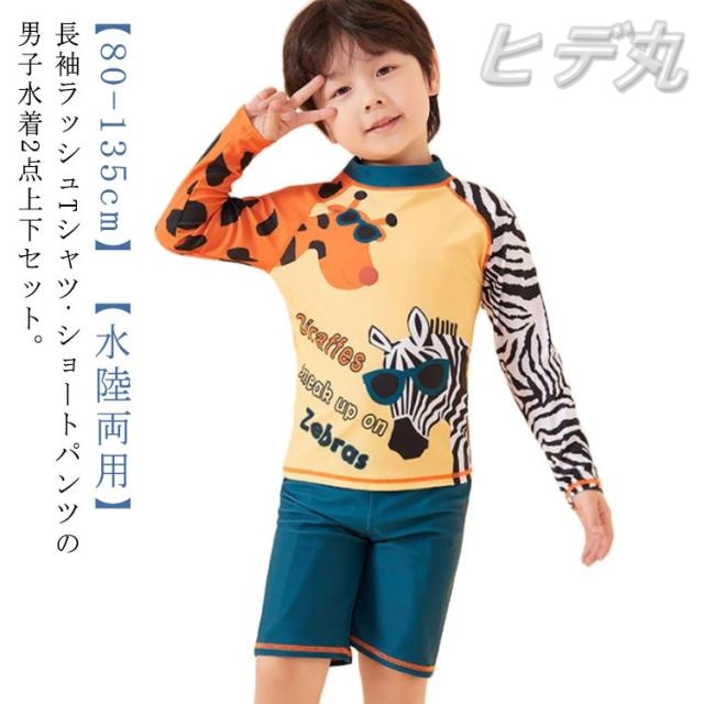 キッズ 水着 セパレート 男の子 長袖 ラッシュTシャツ ショートパンツ 上下2点セット ラッシュガード アニマル柄 80 90 100 110 120 130 cm 小学生 ジュニア 男児 水陸両用 水着 速乾 吸水 ストレッチ プール 海 川 リゾート 水遊び