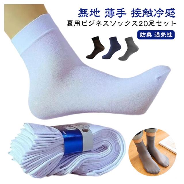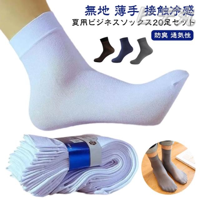 20足セット メンズ スニーカーソックス 靴下 無地 薄手 接触冷感 ビジネスソックス 履きやすい クルーソックス ショートソックス 夏用 くつ下 吸汗 速乾 涼しい ソックス 紳士靴下 通勤 通学 ひんやり 蒸れない 臭わない 防臭 通気性 おしゃれ 無地 送料無料