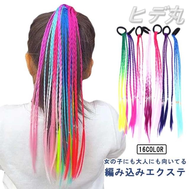 三つ編み エクステ キッズ 子供 編み込み 16色 2点セット 女の子 グラデーション髪 髪の毛 付け髪 ダンス ヘアアクセサリー エクステンション カラフル ウィッグ ヒップホップ レゲエ ダンサー 髪型 舞台 ダンス イベント