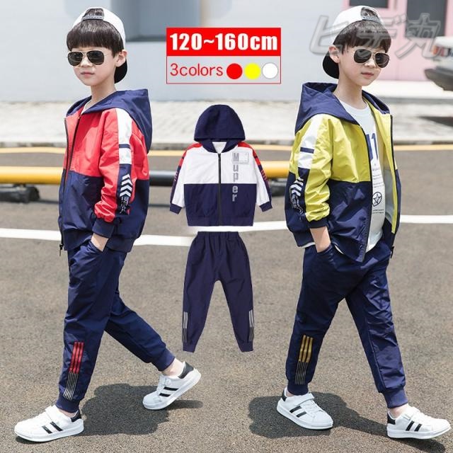 子供ジャージ 男の子 子供服 キッズ 2点セット パーカ 長ズボン ジュニア ボーイズ キッズジャンパー フード付き 長袖 裏地 軽量 丈夫 通気性 お出かけ