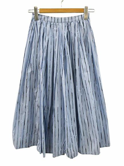 【中古】EGGS ストライプ柄 プリーツ フレア ロングスカート 40 ブルー ボトムス レディース