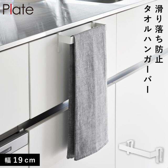 滑り落ち防止キッチンタオルハンガーバー プレート ホワイト 山崎実業 plate タオル掛け キッチン 引き出し シンク タオル 掛け タオルハンガー おしゃれ 1349