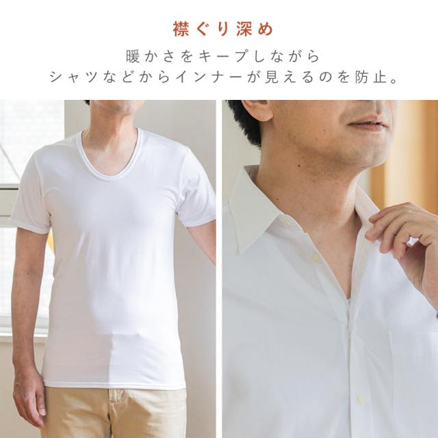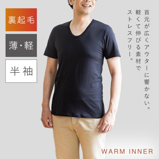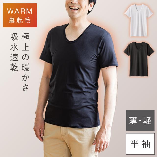 裏起毛 インナー メンズ 半袖 吸汗速乾 あったか 暖かい 冬 暖かい 軽い 防寒 薄手 動きやすい メンズふわぬく裏起毛インナー半袖 メール便対応