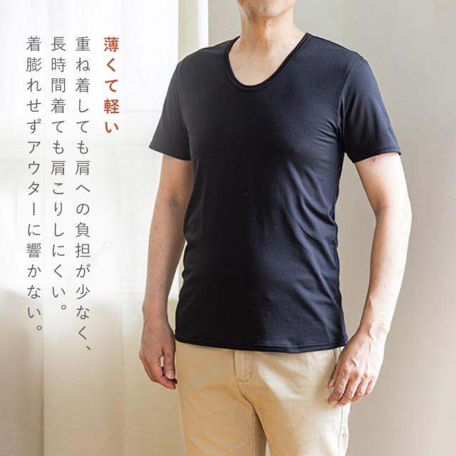 Uネックで首元もスッキリ。薄手で着ぶくれしにくく、アウターに響かないスマート設計。軽い素材だから肩への負担が少なく、長時間着ても快適。