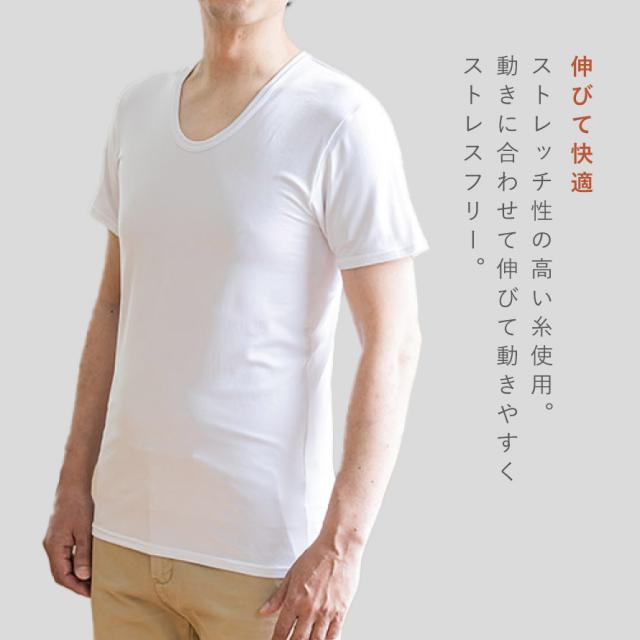 伸縮性のあるストレッチ生地で体にしなやかにフィット。袖口・裾部分には伸びる糸を使用し、動きやすく脱ぎ着もスムーズです。