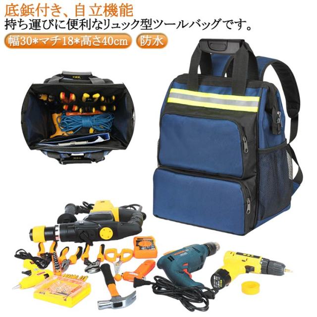 かばん バックパック 大容量 リュック 工具収納 バッグ 撥水 ツールバッグ 大工 多機能 工具箱 防水 工具バッグ ツールバッグ ツールボックス 電工 建設 修理 工事 建築 鉄工 ポケット多い 内装 修理 配線 作業道具 大工道具 カバン バッグ 持ち運び便利 父の日
