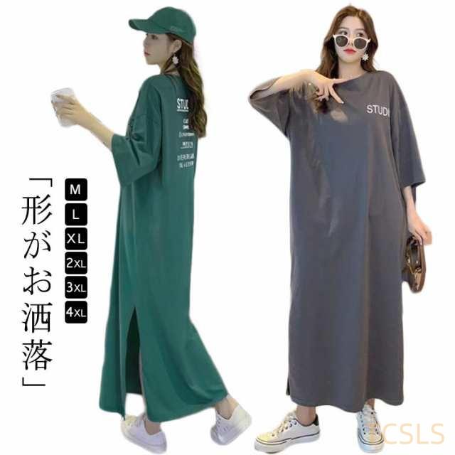 Tシャツワンピ マキシワンピ きれいめ ビッグ ロングワンピース Tシャツワンピ マキシ ロングワンピ ロング ワンピース ドルマン ワンピ カットソー レディース 体型カバー 大きいサイズ 春 夏 半袖 五分袖