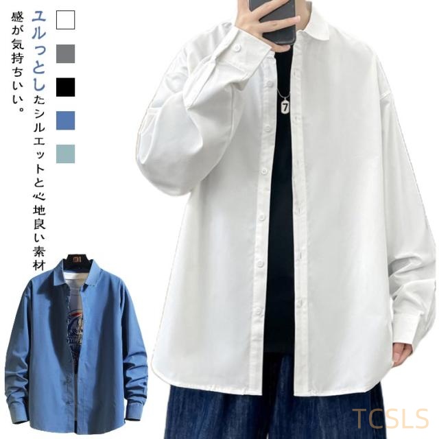 長袖シャツ メンズ 長袖 シャツ カジュアルシャツ シャツ ビッグサイズ オーバーサイズ ロング丈 韓国ファッション カジュアル ビッグシルエット ペアルック カップル 春服 秋服