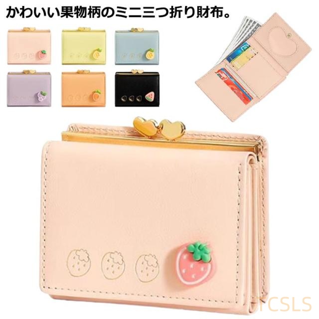 小さい財布 小銭入れ コンパクト レディース 三つ折り財布 かわいい フルーツ柄 ミニウォレット ハート柄 がま口 ミニ財布 カード入れ お札折らない ミニ財布 使いやすい スリム 薄型 カードケース コインケース ゴールド金具 女の子 学生 高校生 女子