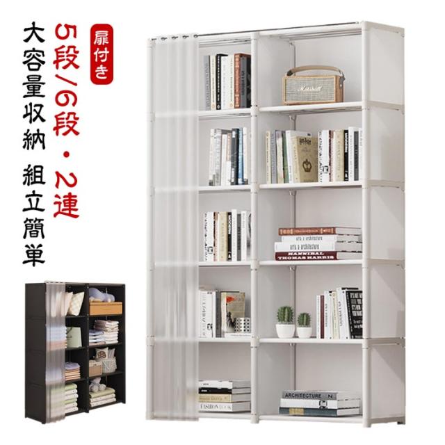 黒 大容量 白 2連 5段 書棚 防塵 本棚 ブックシェルフ 収納ラック 扉付き 6段 収納 漫画 コミック コミックラック おしゃれ 収納ボックス おしゃれ スリム 絵本棚 大容量 棚 収納棚 CDラック DVDラック ホワイト