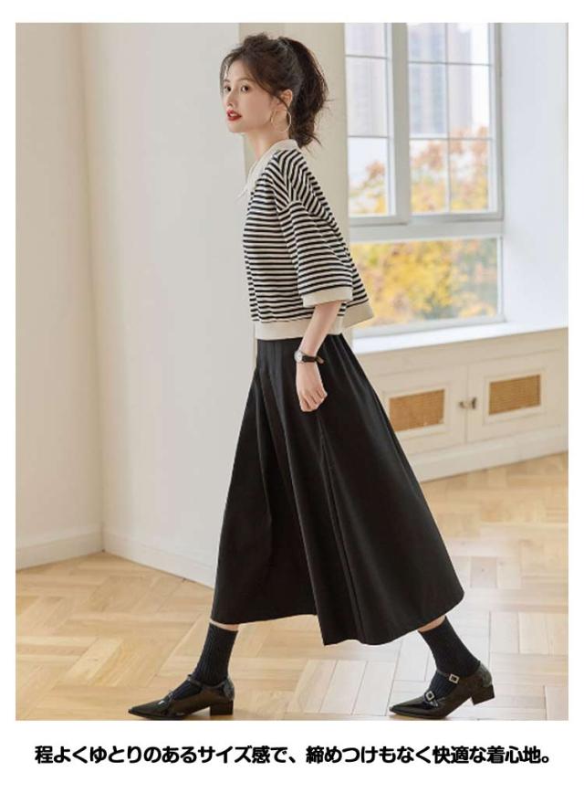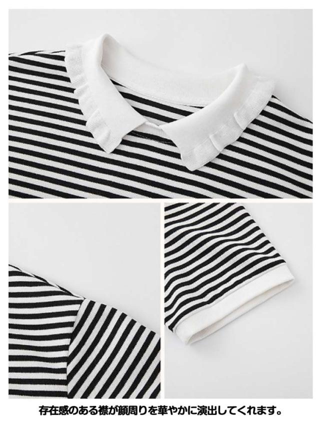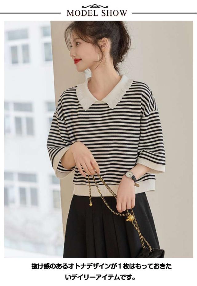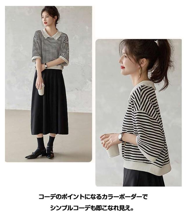 カットソー ボーダー柄 ロンT 襟付き レディース スウェット チュニック 五分袖 ポロシャツ Tシャツ トップス 送料無料 ビッグ ゆったり 無地 体型カバー カジュアル 大人可愛い おしゃれ 春
