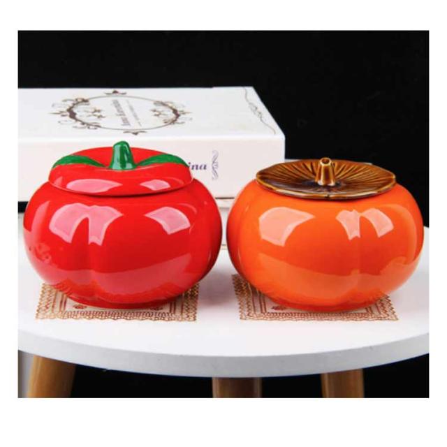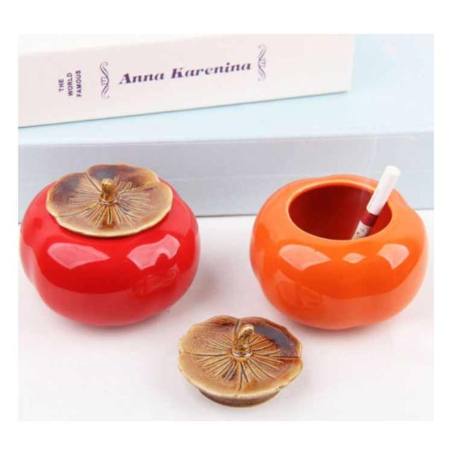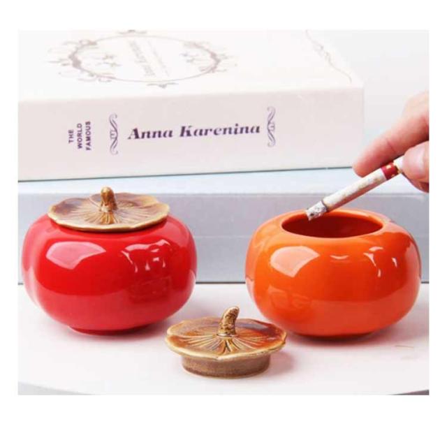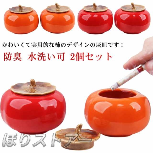 灰皿 蓋付き 柿型 2個セット 卓上灰皿 ふたつき はいざら おしゃれ セラミック 陶器 灰皿 大容量 かき形 置物 インテリア かわいい 防臭 水洗い可 タバコ カフェ ホテル 自宅 飲食店 誕生日 贈り物 プレゼント 父の日 ギフト 【送料無料】