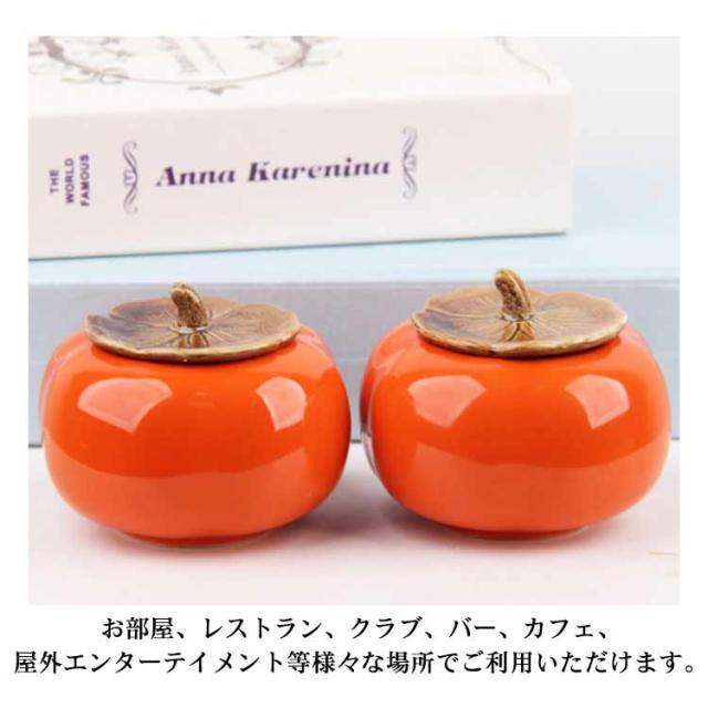 灰皿 蓋付き 柿型 2個セット 卓上灰皿 ふたつき はいざら おしゃれ セラミック 陶器 灰皿 大容量 かき形 置物 インテリア かわいい 防臭 水洗い可 タバコ カフェ ホテル 自宅 飲食店 誕生日 贈り物 プレゼント 父の日 ギフト