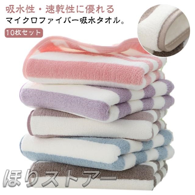 フェイスタオル ふんわり 10枚セット 吸水 家庭用 厚手 まとめ買い 吸水タオル 厚手 マイクロファイバー 乾きやすい ふわふわ タオル ボーダー柄 速乾 バスタオル おしゃれ 春夏秋冬 大人用 柔らかい 通気性 業務用 抗菌防臭 部屋干し 毛落ちしにくい 安い