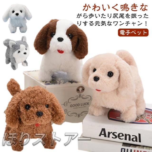 | かわいく鳴きながら歩いたり尻尾を振ったりする元気なワンチャン! 5種類選択可能で、好きな犬種をどうぞ! わんちゃんを飼いたいけど一人暮らしや、マンション住まいで飼えない方、お年寄りの癒しとして最適!小さなお子様や高齢の方までどの世代にも愛されること間違いなし! プレゼントにもおすすめです。 | |