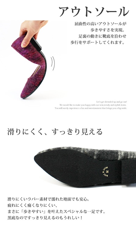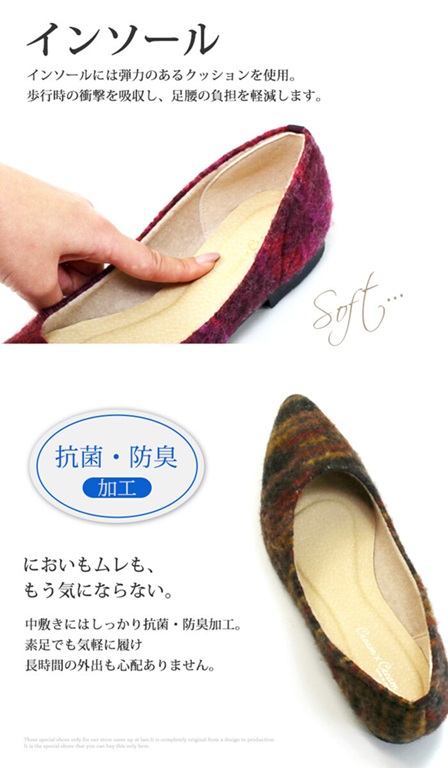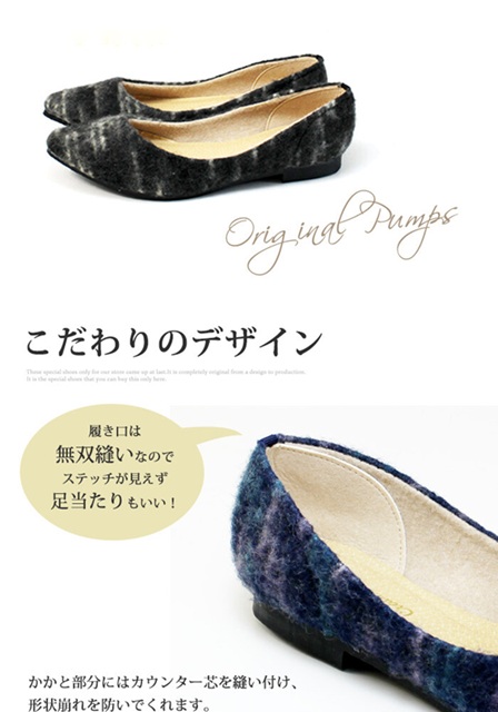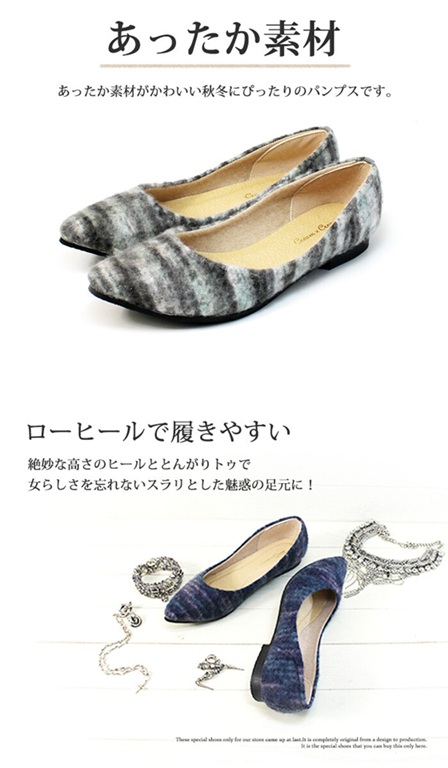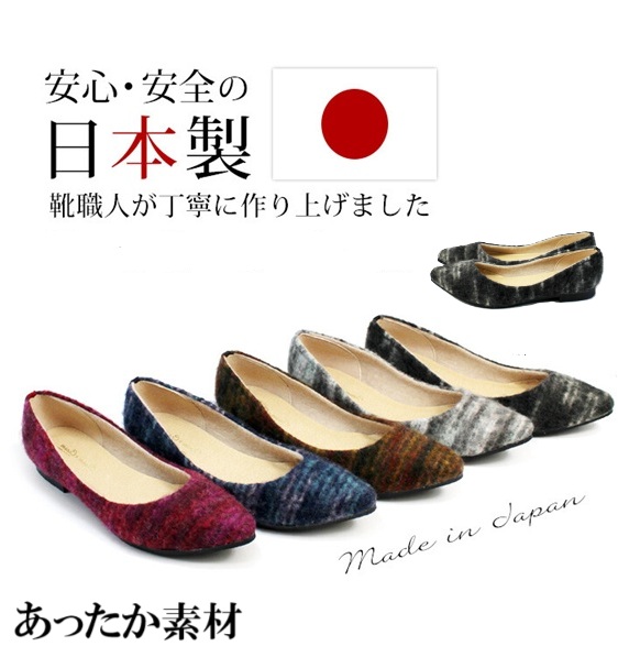 日本製 パンプス あったか素材 かわいい とんがりトゥパンプス もこもこ ぺったんこ カジュアルパンプス 履きやすい 歩きやすい おしゃれ