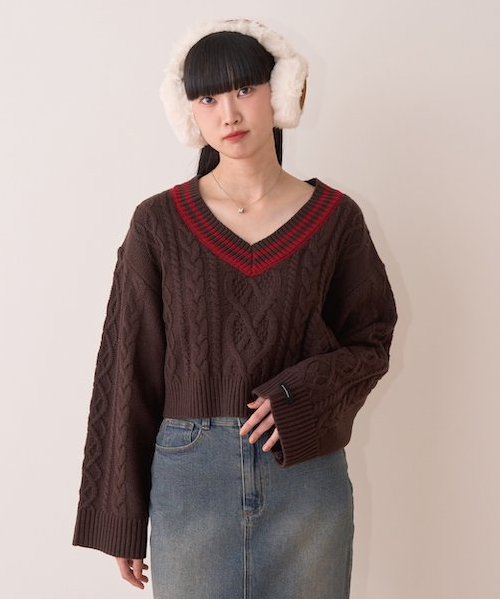 ■トレンドのギークシックスタイルが叶う◎ざっくり編みが可愛いチルデンニット