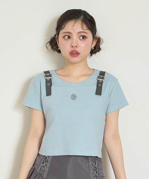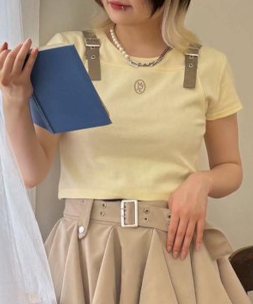 レイヤード風ディテールに肩紐のベルトデザインがポイントのこなれ感満載のテレコアイテム