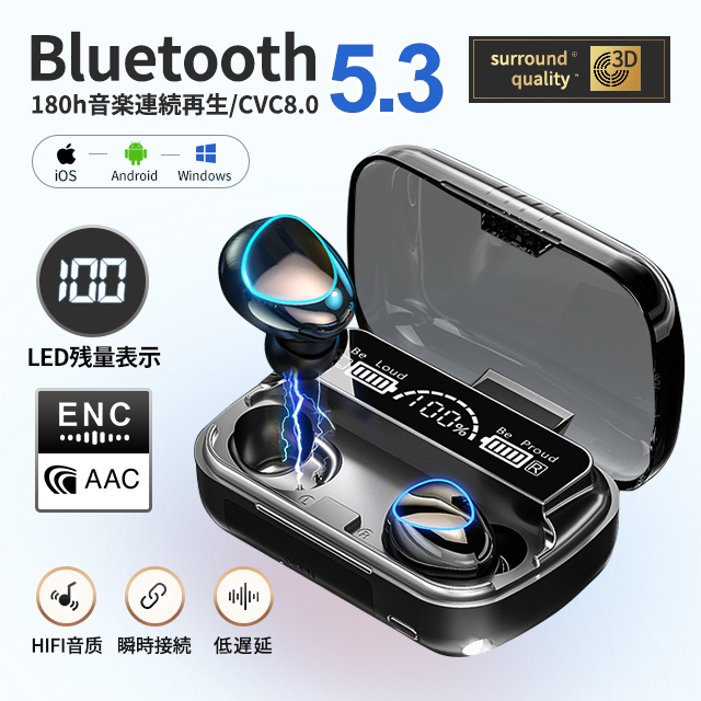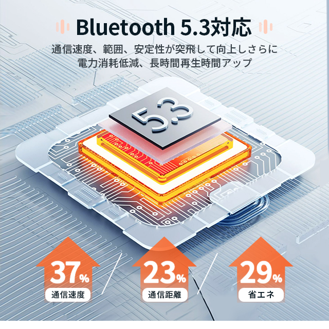 【Bluetooth5.3自動ペアリング】バージョン4.2より更に高速データ伝送でき、音の途切れ、遅延などの問題を改善し。自動ペアリング機能が付きます。