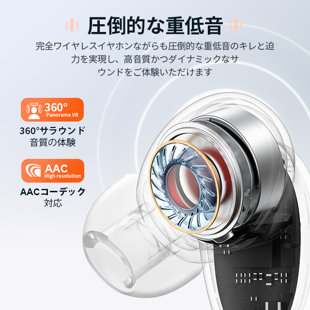最新 Bluetooth5.3 ワイヤレスイヤホン イヤホン CVC8.0 AAC対応 ノイズキャンセリング 最大220待機時間 Hi-Fi高音質 マイク内蔵 ブルートゥース イヤホン 超軽量 自動ペアリング iPhone/Android