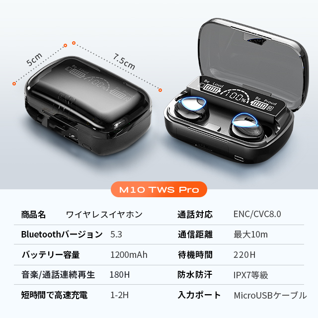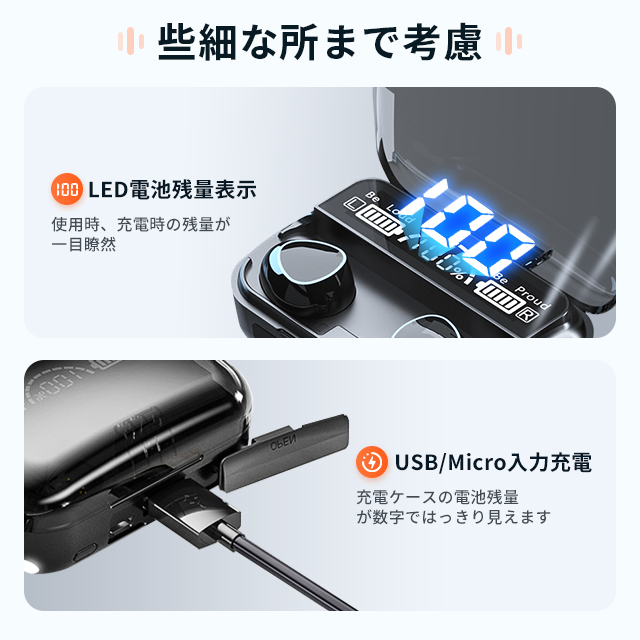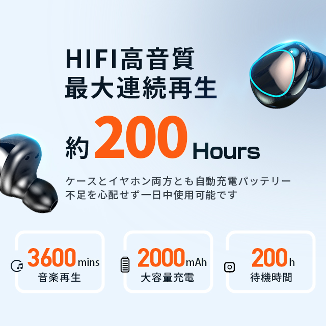 【1200mAh大容量バッテリー】最大220時間使用可能、最大180時間音楽連続再生、一日中聞いても構いません。