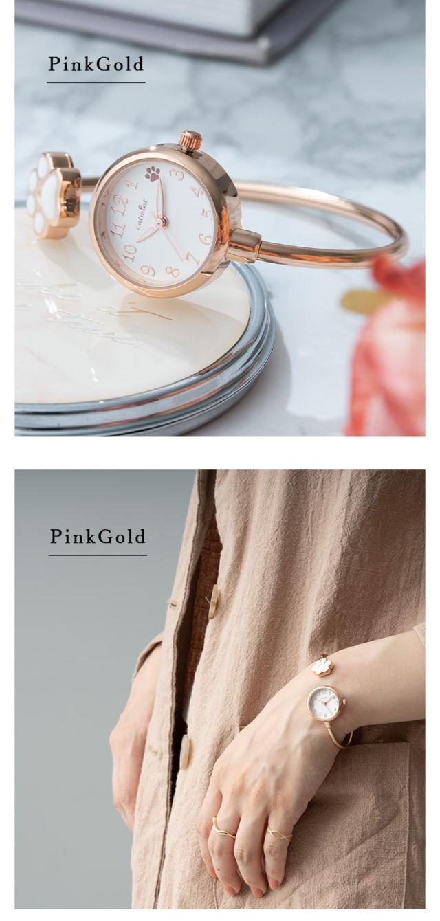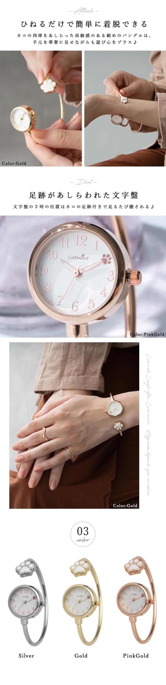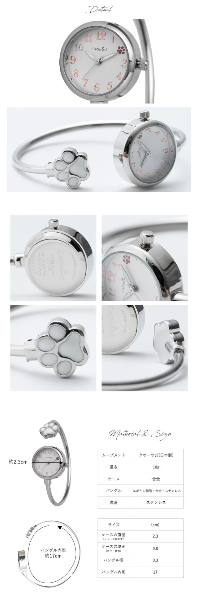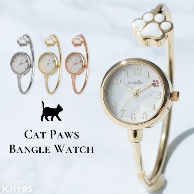 腕時計 レディース バングル ウォッチ ネコ 猫 肉球 着脱簡単 可愛い おしゃれ シンプル 大人 20代 30代 40代 見やすい ブランド 仕事 通勤 通学 プレゼント ギフト 女性 1年間のメーカー保証付