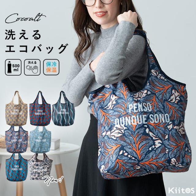リゾート感のあるモチーフプリントが特徴の保冷トートバッグ。