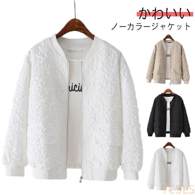 ブルゾン ノーカラージャケット レディース 長袖 ショート アウター ノーカラー ジャケット 春 ライトアウター 羽織り 春服 通勤 韓国