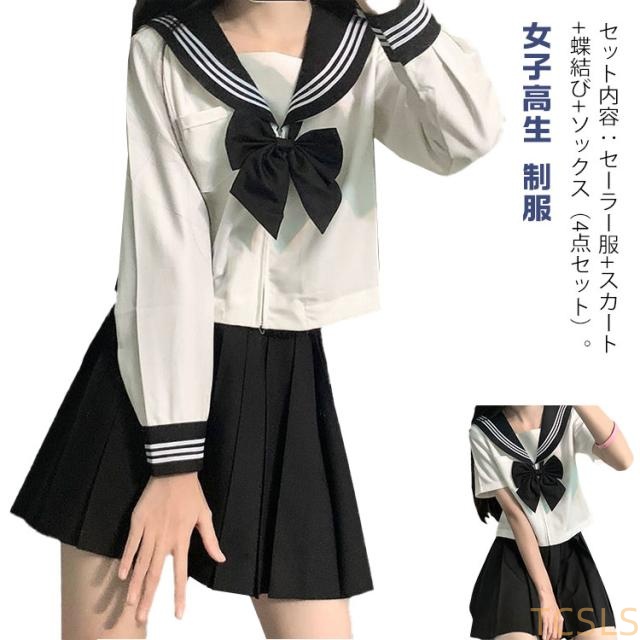 セーラー服 仮装 コスプレ セーラー服 半袖 制服 4点セット 上下セット 高校生制服 コスチューム 衣装 コスプレ 長袖 リボン スカート 学生服 女子高校生 レディース 大きいサイズ セーラー襟 JK制服 制服セット ハロウィン 入学式 卒業式