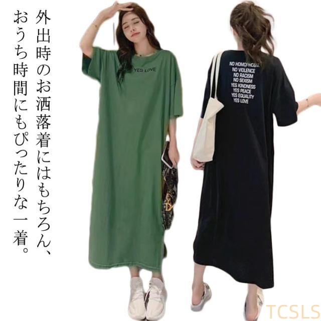 Tシャツワンピ マキシ マキシワンピ ワンピース レディース ロング ロングワンピース ドルマン ロングワンピ Tシャツワンピ Tシャツワンピース ワンピ カットソー きれいめ 体型カバー 大きいサイズ 春 夏 半袖 五分袖