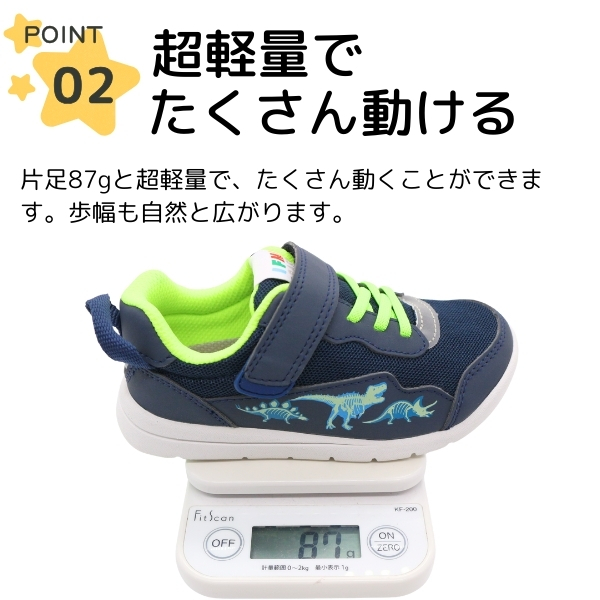 片足87gと超軽量で、たくさん動くことができます。歩幅も自然と広がります。