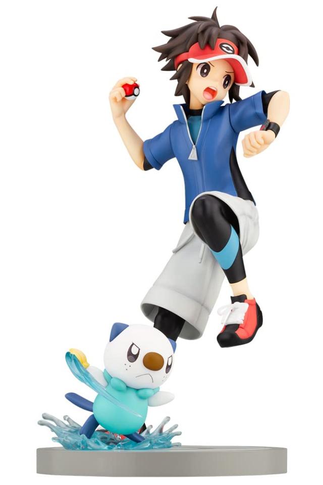 KOTOBUKIYA Pokemon サンバイザーの下から眼差しに、 モンスターボールを投げる瞬間の躍動感のあるポーズ。 クリアパーツで再現された水しぶき上でシェルブレードを構えるミジュマルも!