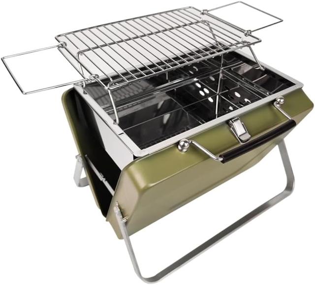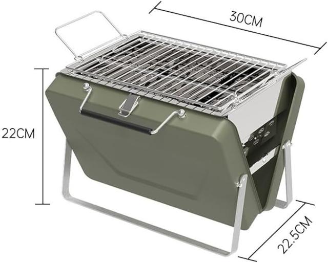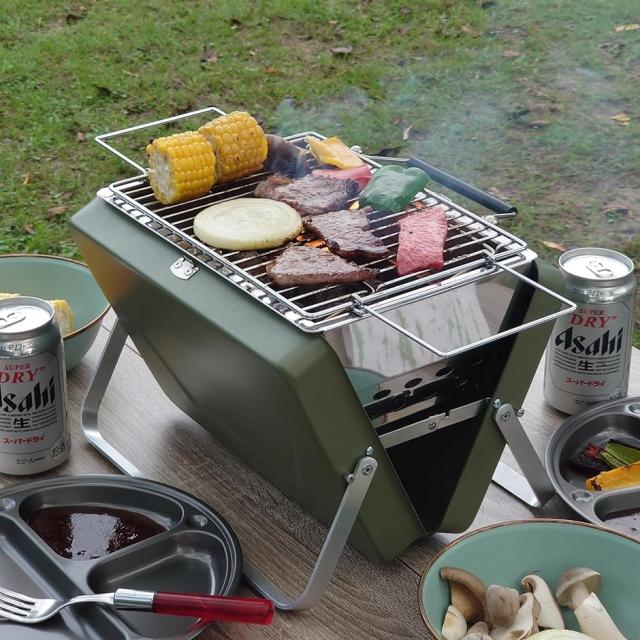 バーベキューコンロ アタッシュケース型 グリル V型 卓上グリル BBQ グリーン( Green 4人用)