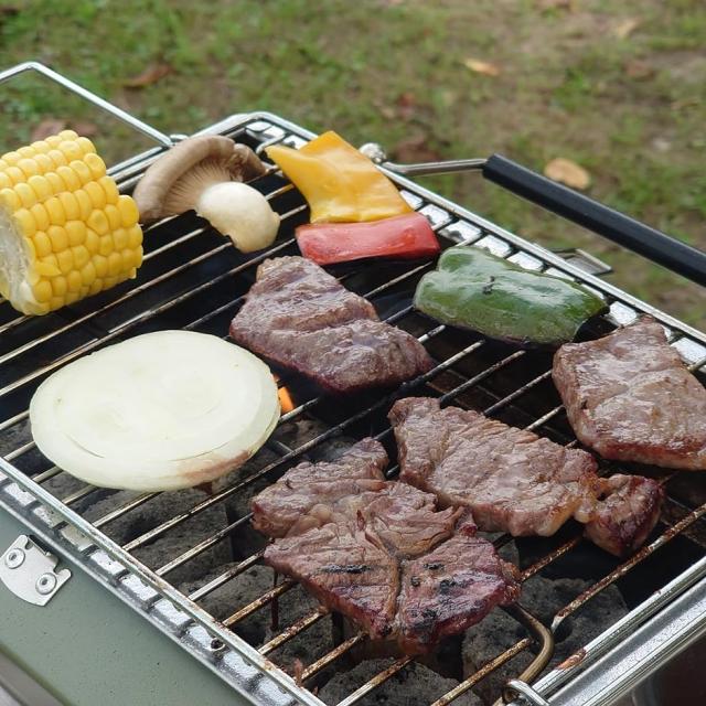 網にはハンドルが付いているので、炭の追加や焼き過ぎ防止には食材をのせたままハンドルを持ってヒョイと上げるだけ。