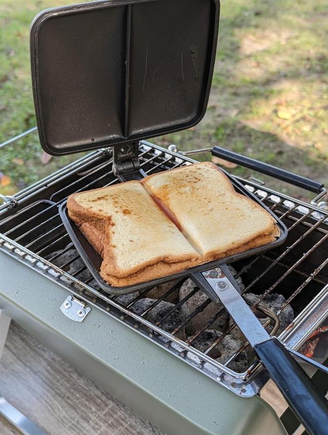 多少重さがあるものものせられるので、バーベキューしながらスキレットでアヒージョを作ったり、ホットサンドメーカーでパンを焼いたり、メスティンで煮込んだり、いろんな料理が楽しめます。