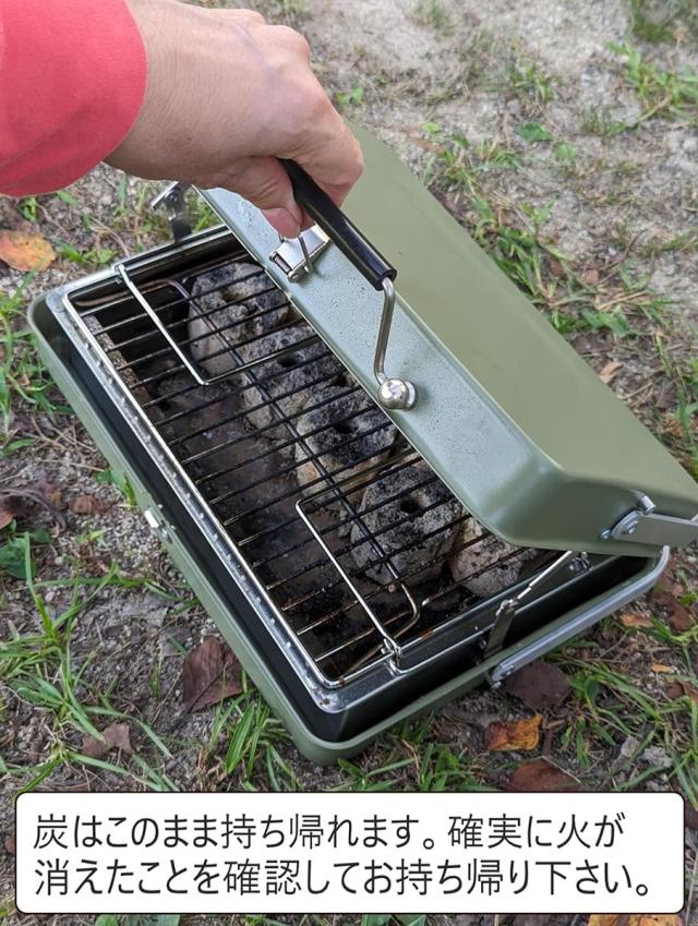 使い終わったらフタをして炭をそのまま持ち帰れるので、キャンプ場での後片付けラクラクです。