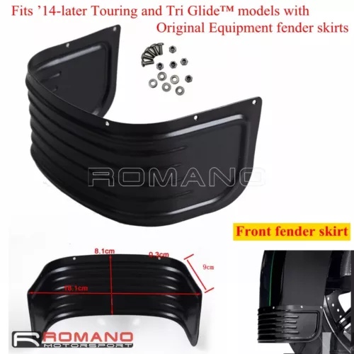 | Condition NewBrand RomanomotorcyclePlacement on Vehicle FrontManufacturer Part Number HA-5214-BKType Front fender skirtMaterial SteelCountry/Region of Manufacture ChinaUPC 699997357206Fit Fits ’14-later Touring and Tri Glide modelsApprox dimensions As picture showsItem type For Original Equipment fender trimFeature Four raised ccent ribs that wrap around the rearFunction Complement to any styling directionInstallation Instruction Not IncludedColour BlackItems | |