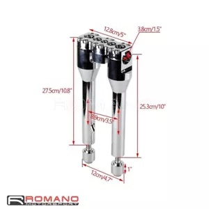 | Condition NewBrand RomanomotorcycleManufacturer Part Number HR-380-10-CHCountry/Region of Manufacture ChinaFeatures Adjustable, Anti-Rust, Anti-Vibration, DurableCompatible Handlebar Diameter 38mmMaterial AluminumItems Included 1 x set riser 4 x pcs mounting bolt 2 x 1-inch columnType Upright Handlebar RisersUPC 699965549527Colour ChromeRise Height 10" + 1"Fitment Fit Harley most Dyna / Street bob / Softail / Sportster modelsUniversal Fitment YesNote For 883L/X4 | |