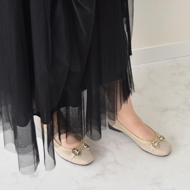 リボンやビジューほど甘くなく、辛口なコーデにもよく合います。