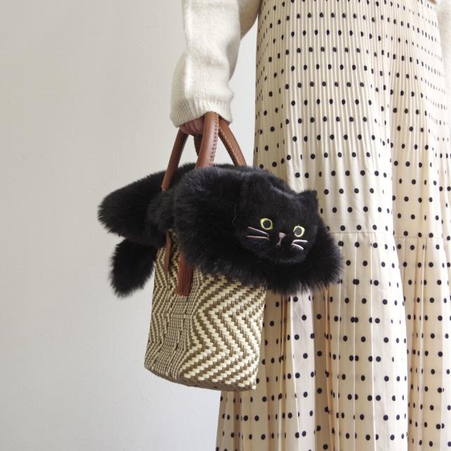 普段お使いのメルカドバッグやトートバッグを、秋冬らしい雰囲気に変えてくれる 猫フェイス付きエコファーフラップカバー。