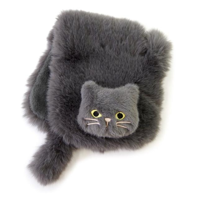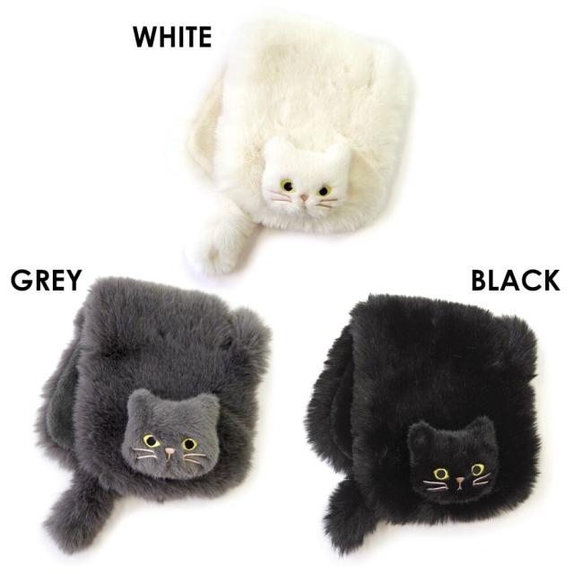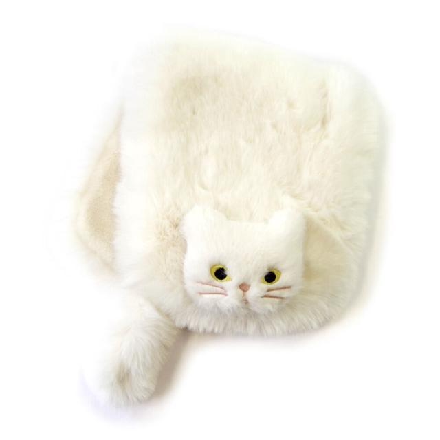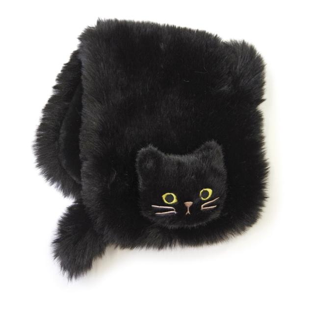 大きめサイズのふわふわファーに、つぶらな瞳とぴょこんと立った耳がついた猫の顔デザインで、持つだけでコーディネートの主役になる可愛さです。