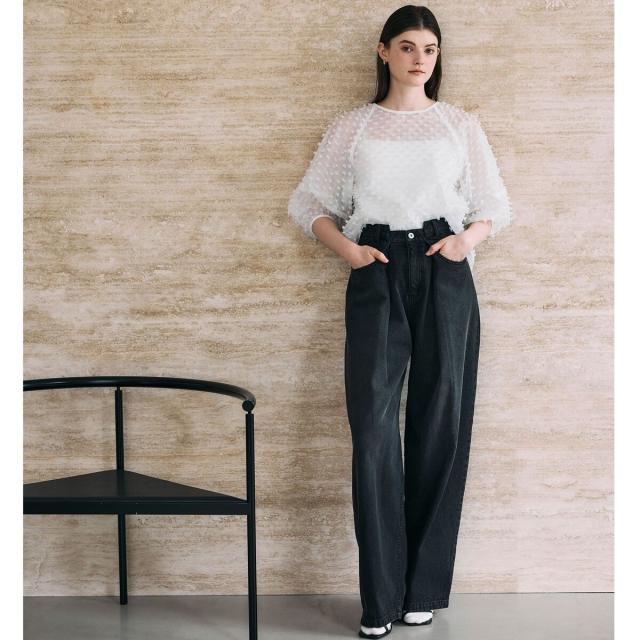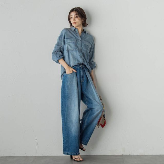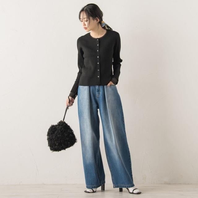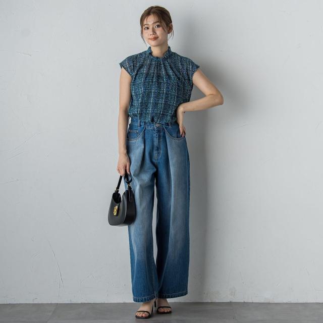 大胆なタックデザインとほんのりカーヴィなラインが穿くだけで旬なムードに格上げしてくれる新しいデニム。
