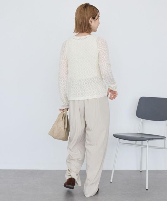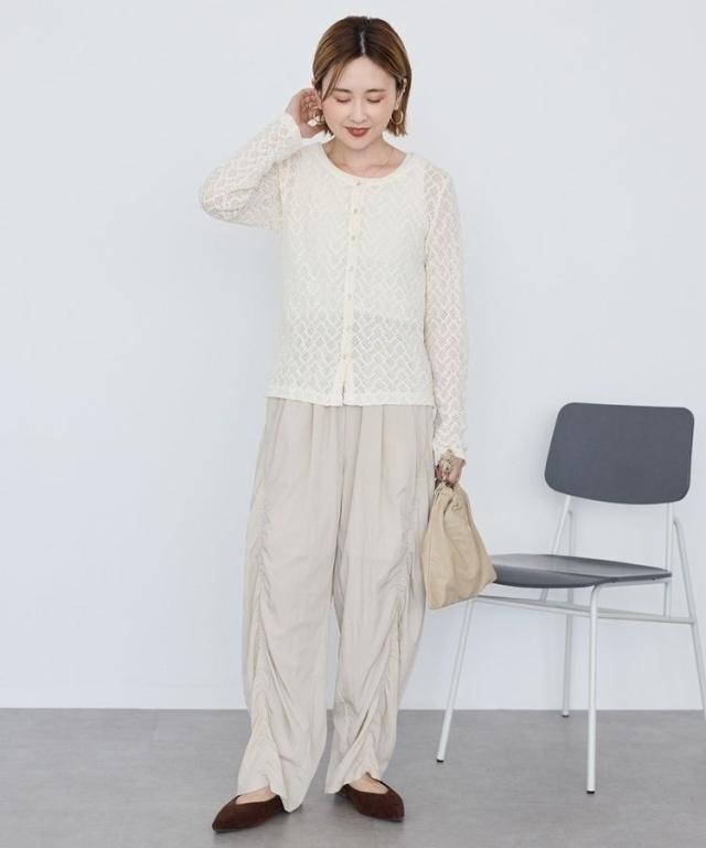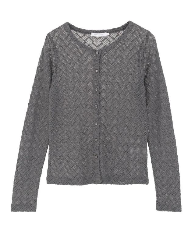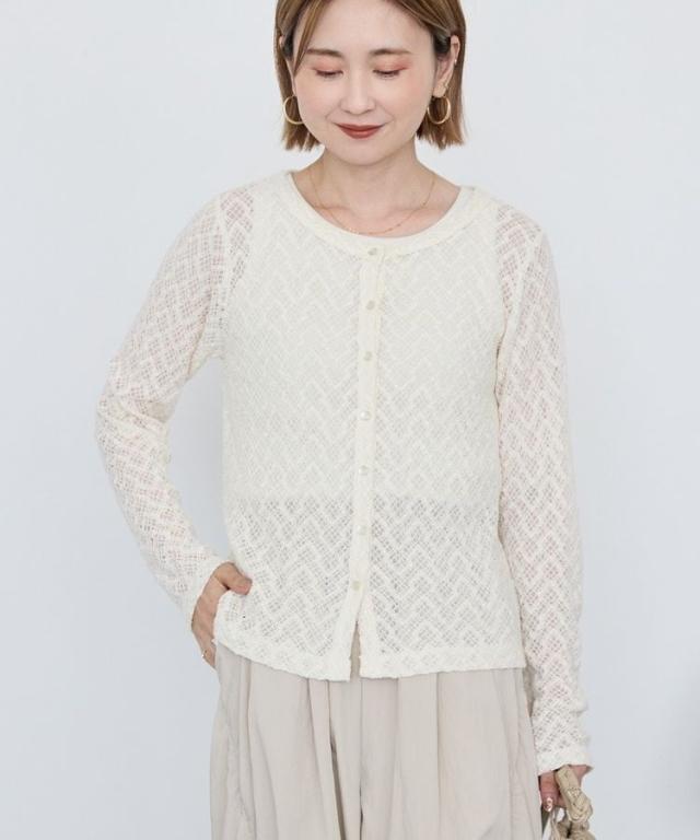 抜け感あるシアーレースが魅力的なデザインカーディガン。コンパクトなベーシックフォルムでソフトなフィット感も嬉しい着心地優しい1枚です。前開きはもちろん、ボタンを閉めてプルオーバーとしても着用頂ける着回し力の高さもポイント。タンクトップやキャミソールと合わせたヘルシーなスタイリングや、ロンT合わせのレイヤードもおすすめです。透け感[あり]