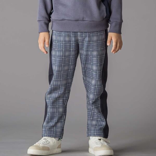 【お揃い】チェック柄裏毛配色切り替えロングパンツ(95~160cm)