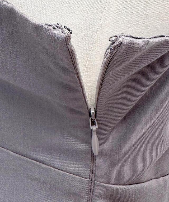 優雅な印象を与え、ドレスのしなやかなシルエットが