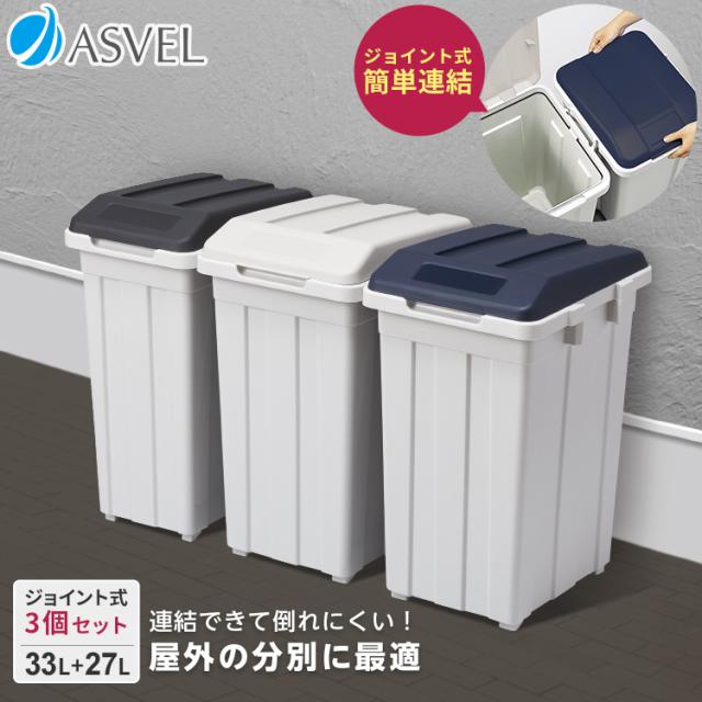 ゴミ箱 おしゃれ 屋外 分別 ジョイント ペール 3個 セット 90リットル アスベル ダストボックス 大容量 90l 90L 蓋付き ベランダ 資源ゴミ ごみ箱
